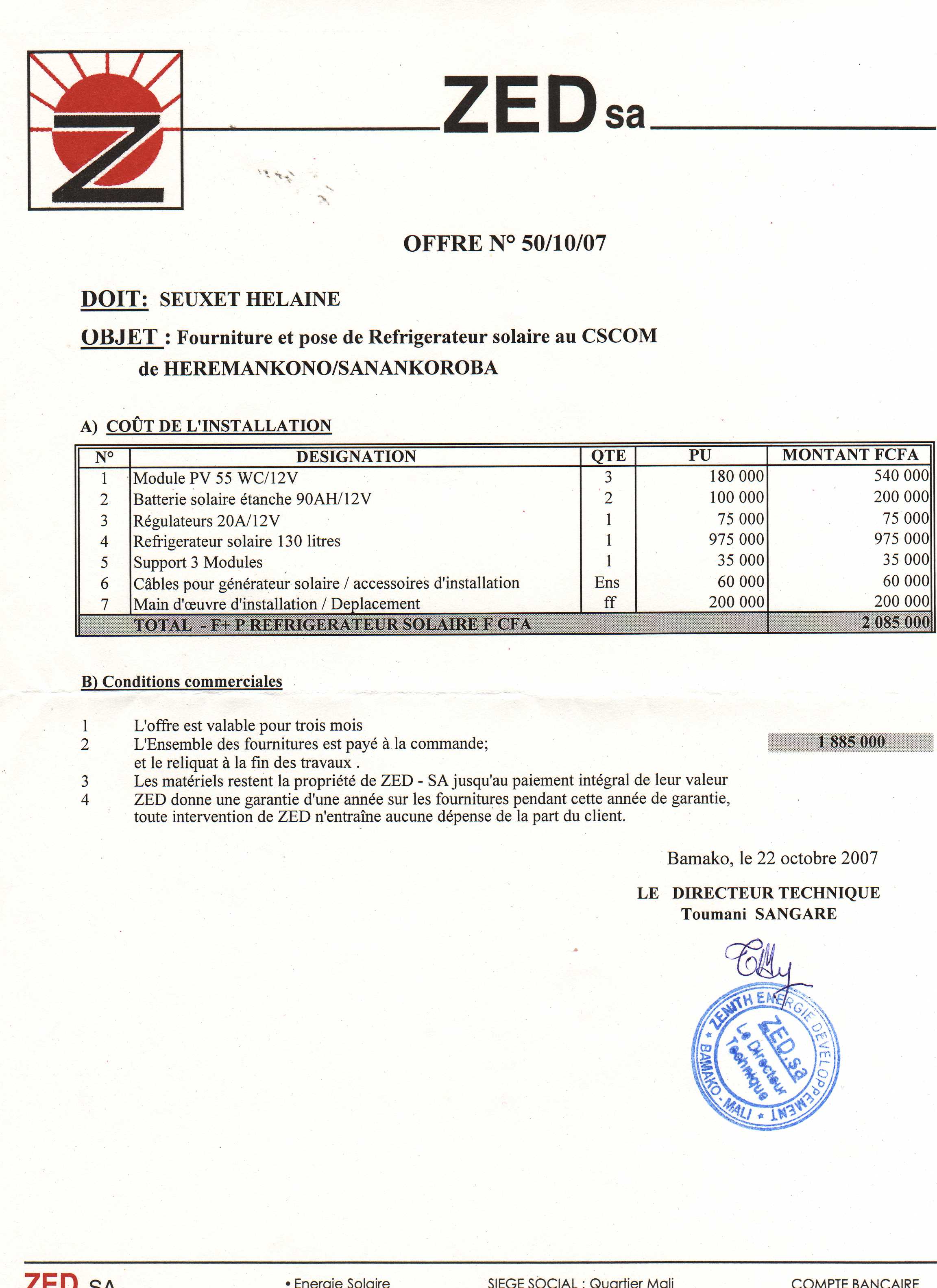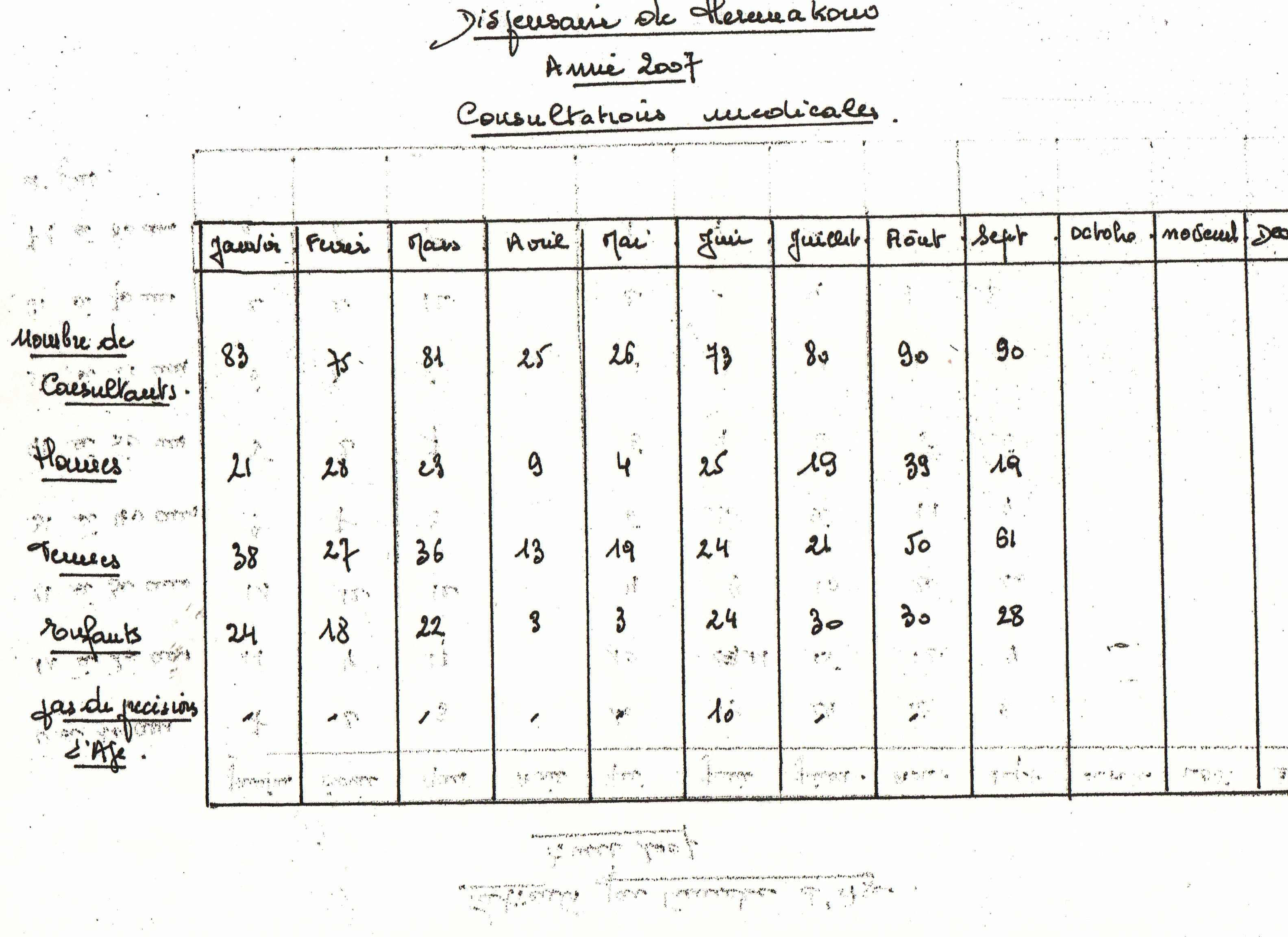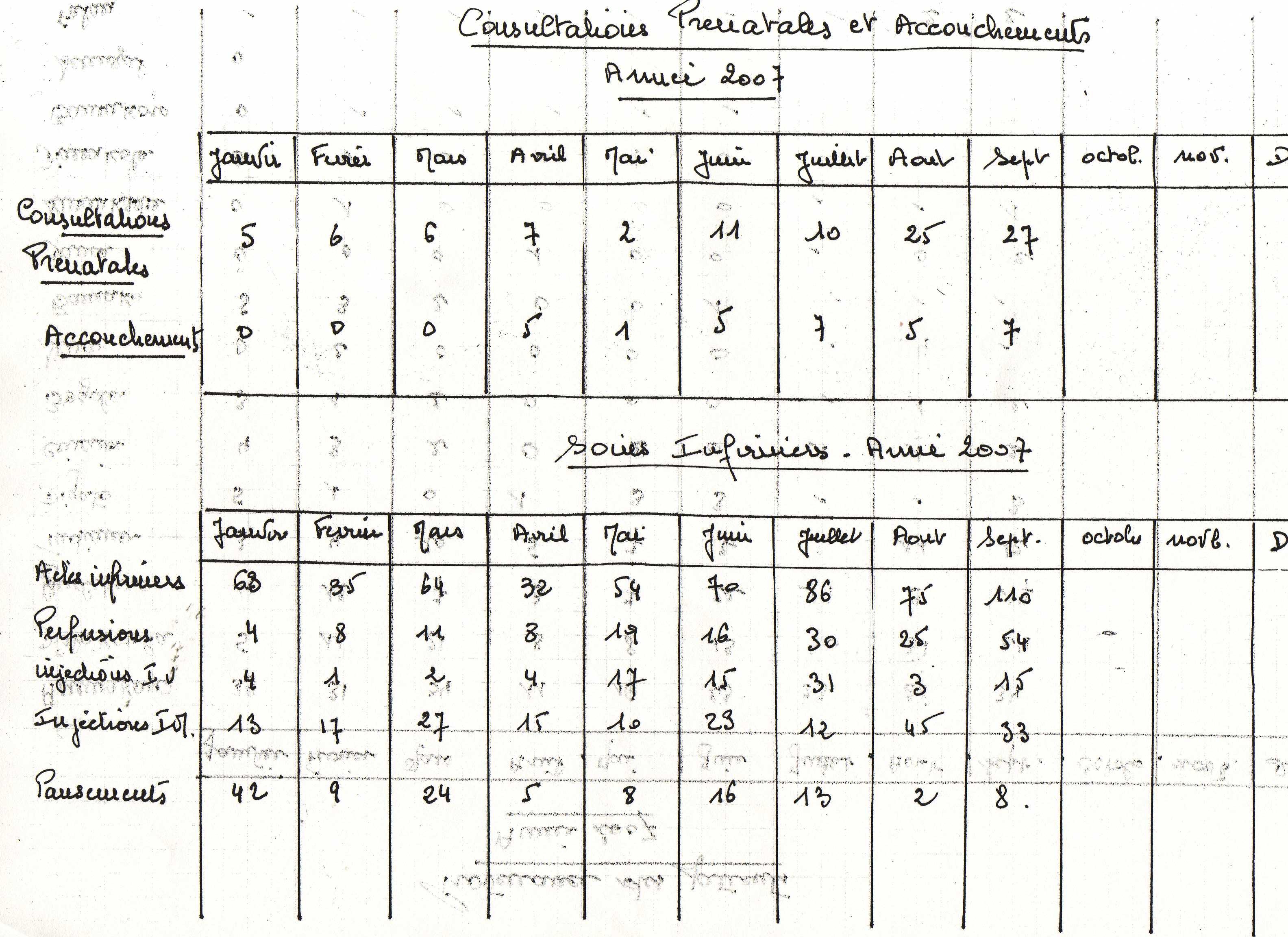 a été fait par Hélène Seuxet en juin 2007 des soins infirmiers et provenance des patients, consultations et consultations prénatales, depuis juillet 2006. Elle a écrit le 3 juillet: