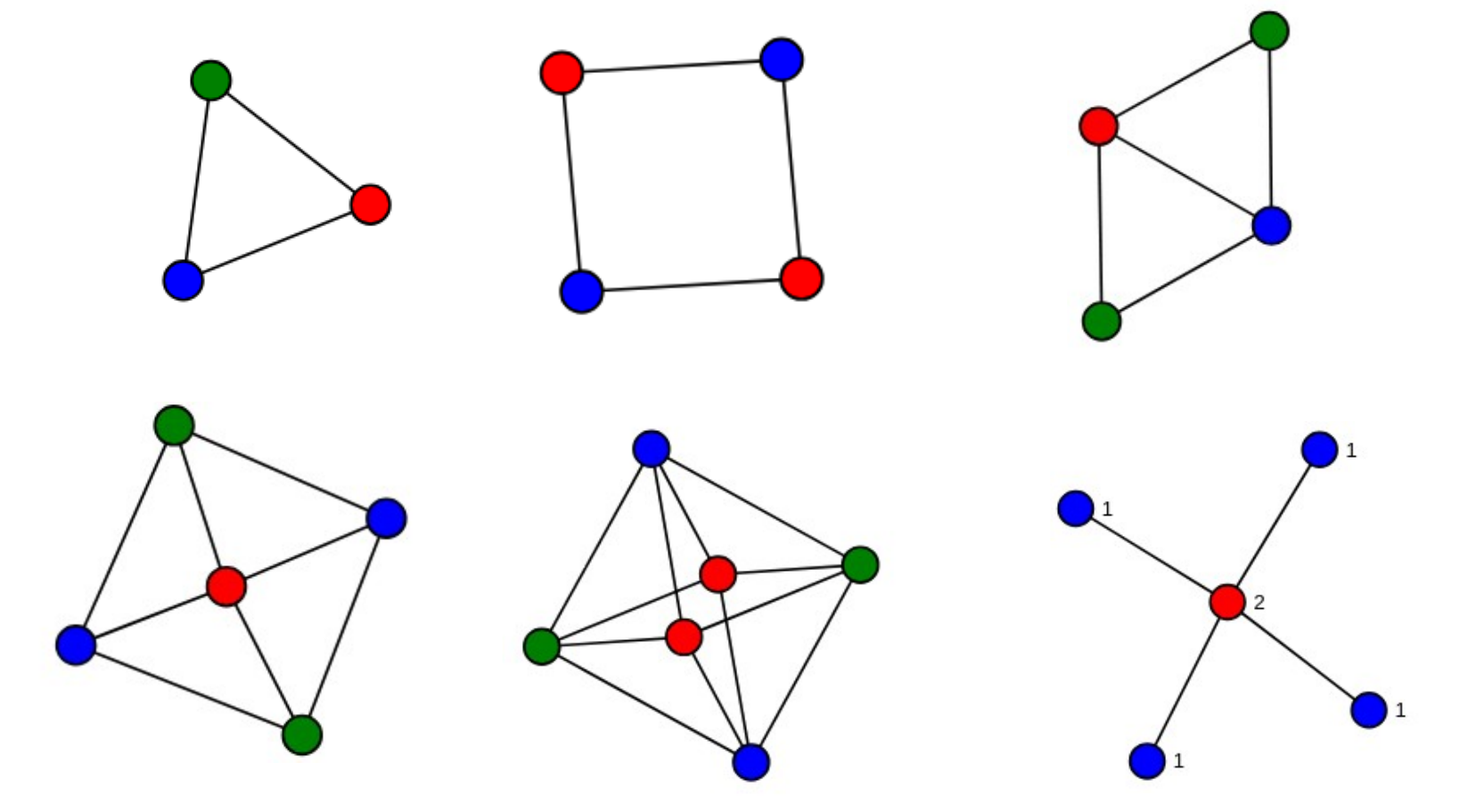 The examples here are the complete tripartite graphs: Use the arrows to change the sizes of the parts, and click "draw graph" to redraw.